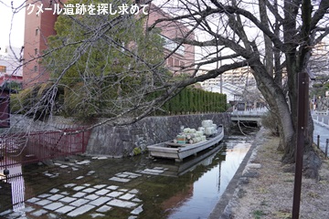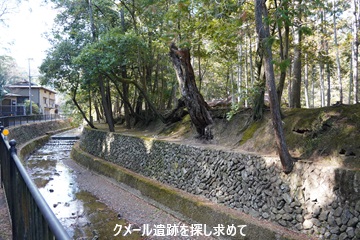 西芳寺川の護岸の石垣の上に