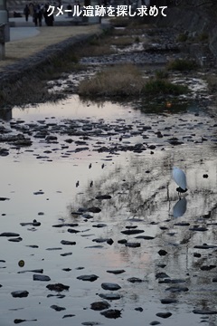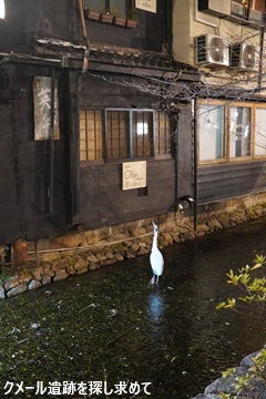 高瀬川の中に鳥がいます。