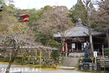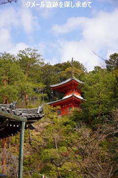 左上、山肌に見える多宝塔は、